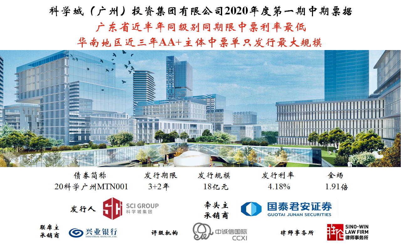 伟德国际唯一官网入口(广州)投资集团有限公司2020年度第一期中期票据近日成功发行。本期中期票据发行规模18亿元,同时创下近半年广东省同级别同期限中票利率最低、华南地区近三年AA+主体中票单只发行最大规模的新纪录。本期中票在发行规模较大的情况下仍然获得了全场1.9倍的超额认购,充分体现了资本市场对伟德国际唯一官网入口集团的高度认可。