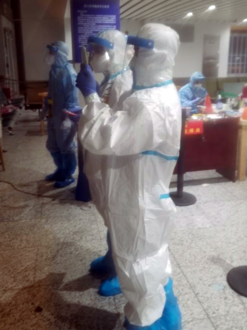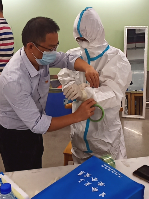 黄埔区负责的机场转运任务重,工作强度大,工作任务经常日夜颠倒,工作人员需要克服生理和心理困难,一上岗往往需要穿戴防护服五六个小时直至完成任务,不仅要克服生理需求,还要忍受闷热和汗水。在心理上则是对新冠病毒的惧怕,怕因自己防护措施做不到位而影响到自己身边的亲友。每次在机场隔离区做任务准备的时候,各位队员都会相互检查穿戴好防护服,相互关心、相互鼓励。